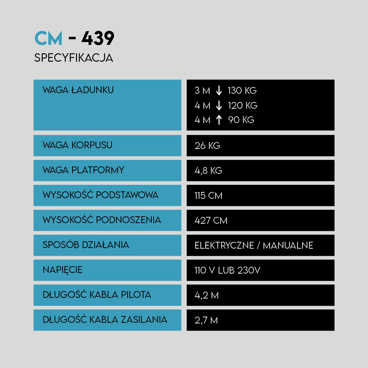 • Wysokość podnoszenia: do 427 cm
